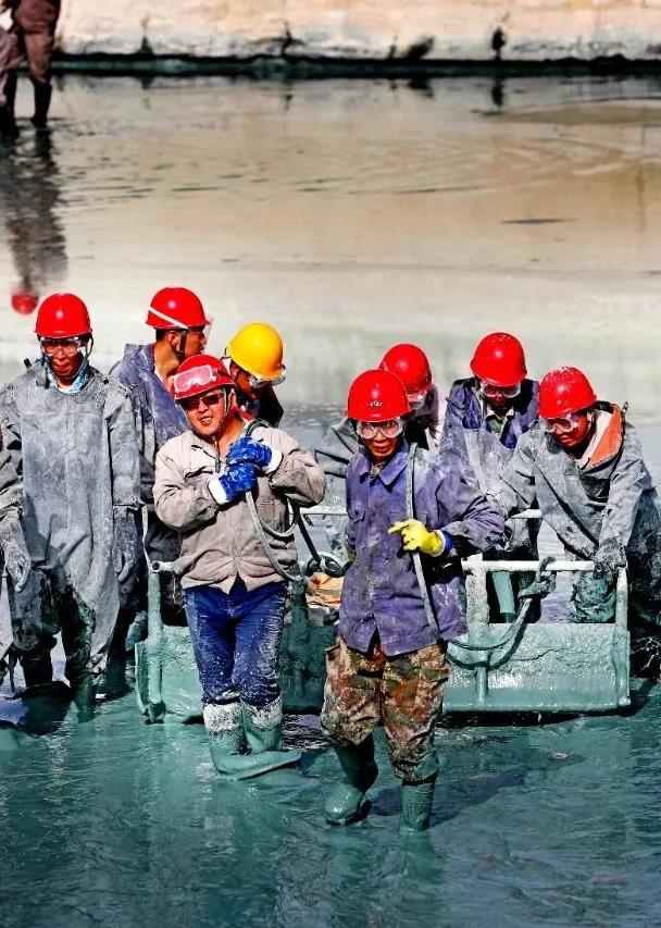 新一代榆化人扎根岗位,坚定不移地追随榆化愿景,如清理清液池的化工工人们,为了保障生产正常运转,他们时常加班加点,早晨迎着朝霞,晚上披星戴月。防水服、护目镜里汗水、泥水混在一起,却高喊着“一二”“一二”的口号,丝毫不顾及身上的脏污与疲惫。他们拼尽全身力气推动着铁铲,全神贯注与电石污泥作斗争,许多人手掌磨出了血泡,可依然没有人喊一声苦,抱怨一声累。