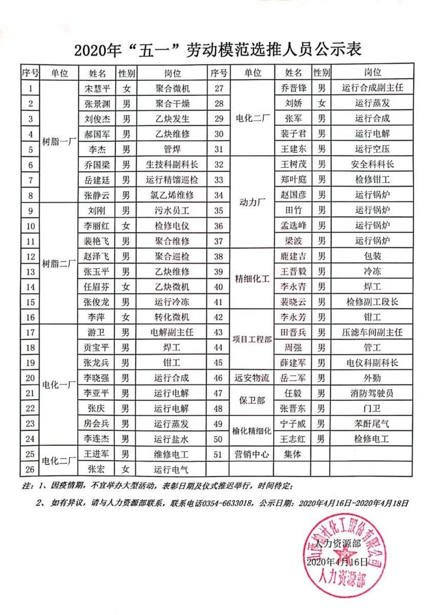 “五一”劳动节来临之际,为进一步激发公司员工信心,诚实劳动、创新劳动,主动适应经济发展“新常态”,根据《关于2020年“五一”表彰奖励的通知》的要求和安排,公司严格按照评选条件和相关程序,选推出