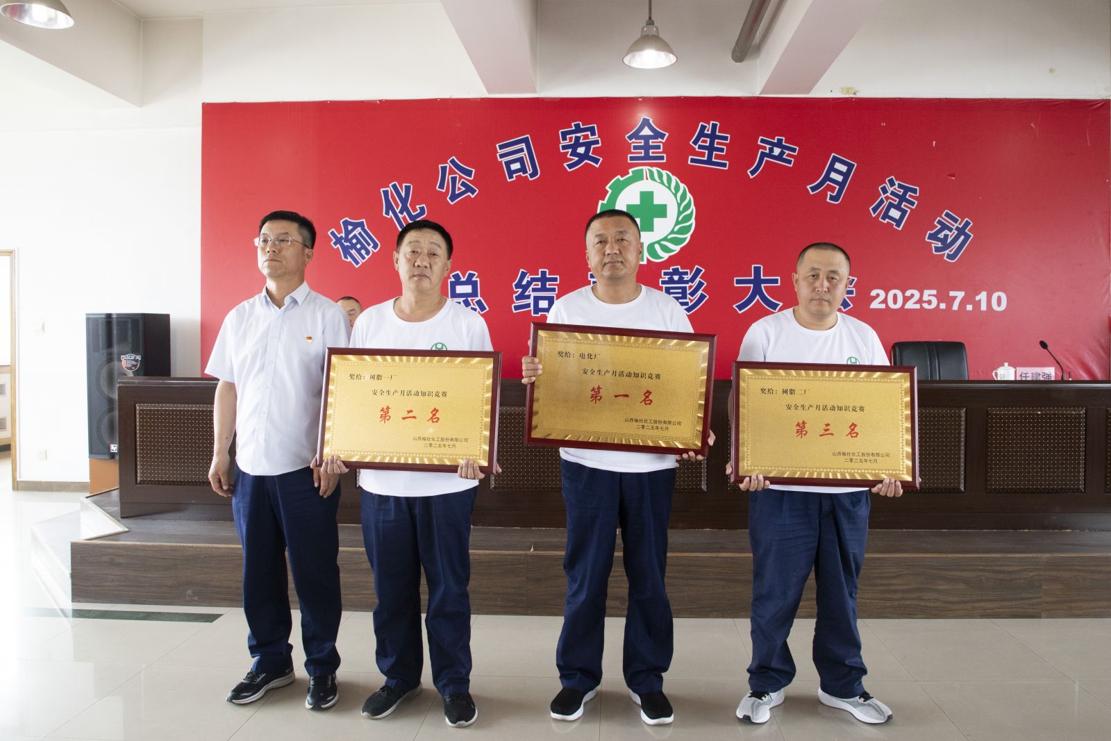7月10日,公司在五楼会议室组织召开“安全生产月”活动总结表彰大会。党委副书记、总经理任开宇,副总经理任建强出席会议,各生产厂厂长、安全管理人员及员工代表共计260余人参加。