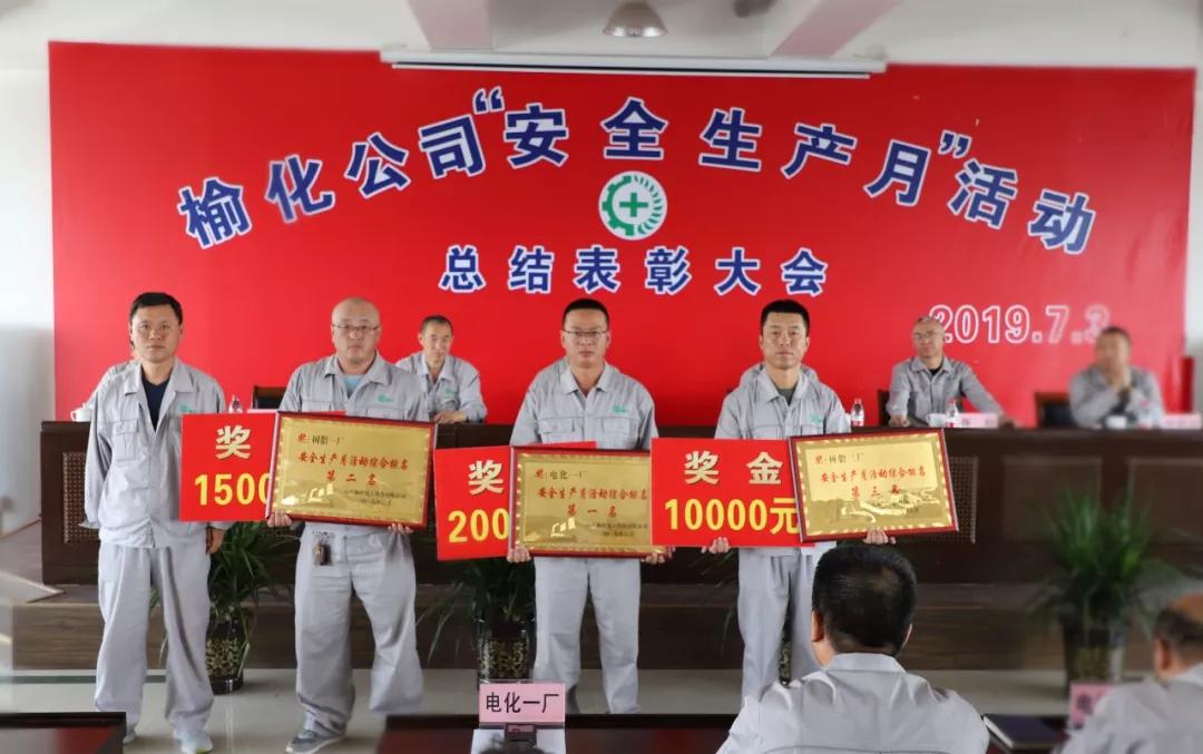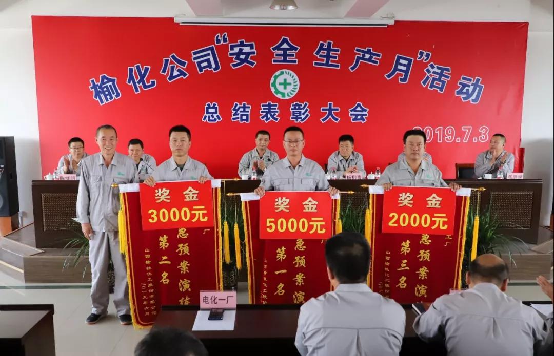 大会对2019年“安全生产月”活动获得综合评比前三名的先进单位(电化一厂、树脂一厂、树脂二厂)及优秀个人进行了表彰。